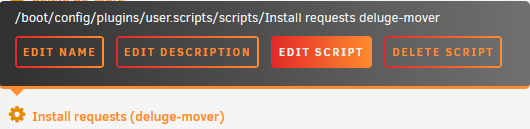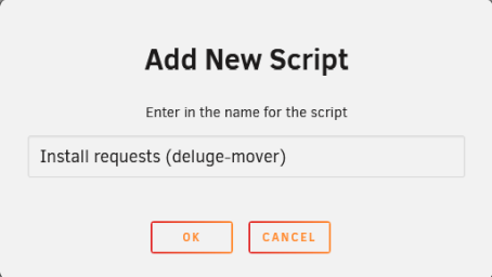 A popup will appear asking you to name the script. For this example, we're going to use Install requests (deluge-mover) and then click on OK.