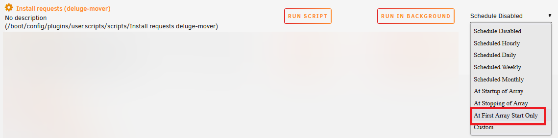 Finally, you will need to choose RUN IN BACKGROUND or restart your unRAID server to install the requests module.