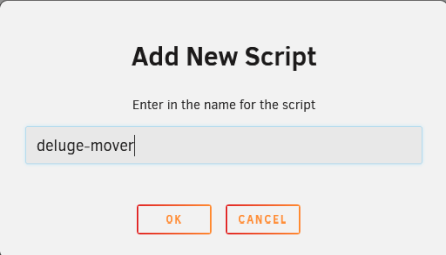 A popup will appear asking you to name the script. For this example, we're going to use deluge-mover and then click on OK.
